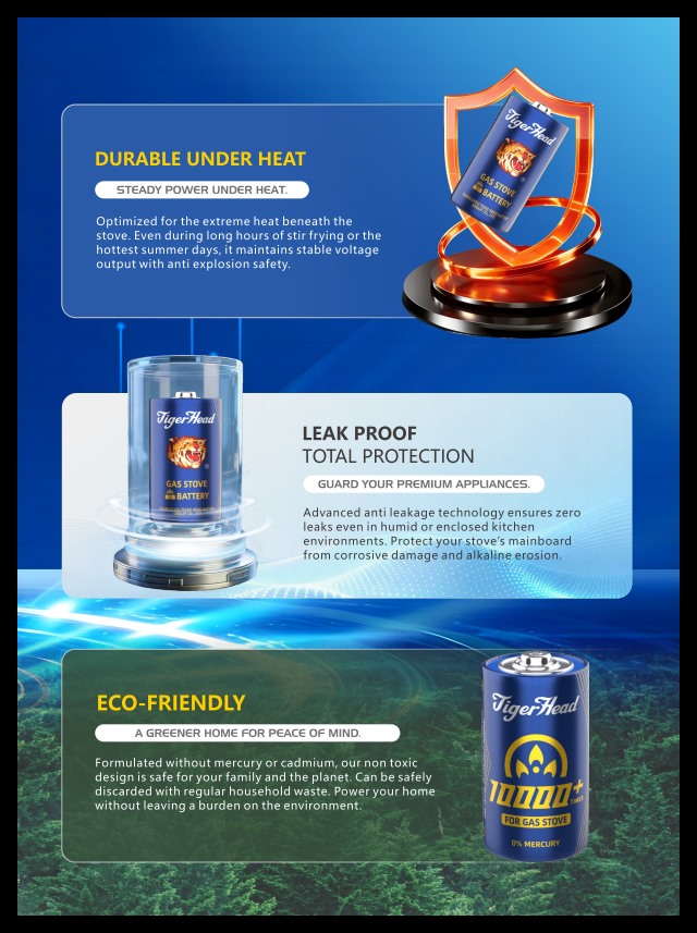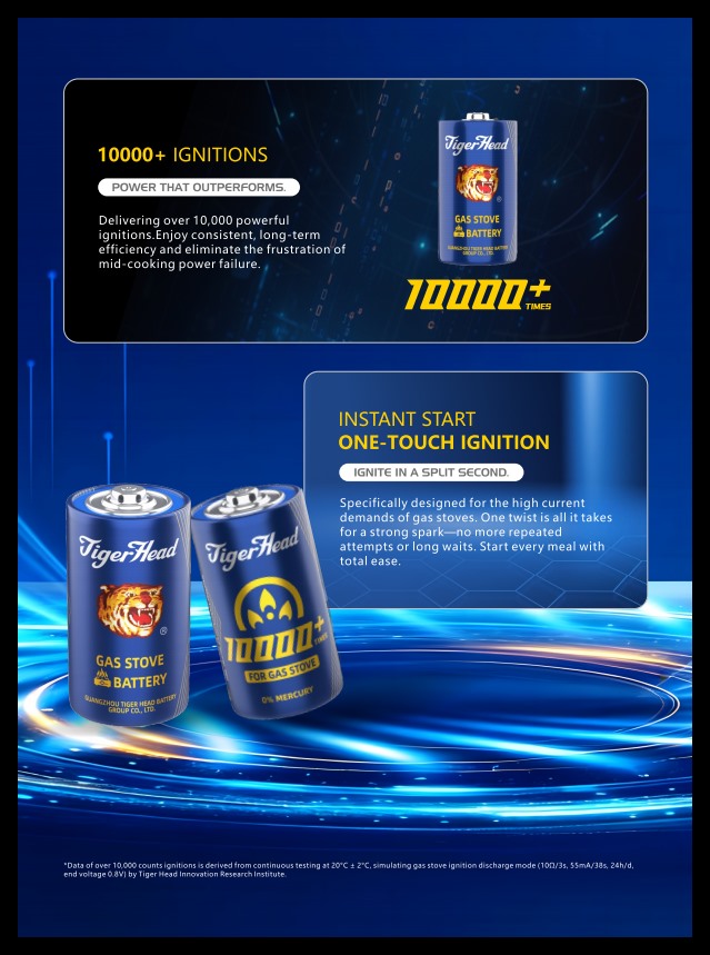 Pilas para estufa de gas Tiger Head, tamaño D, R20P